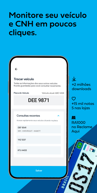 Além disso, o App permite que você obtenha os detalhes da placa, incluindo o número do veículo, sua marca, modelo e motor.